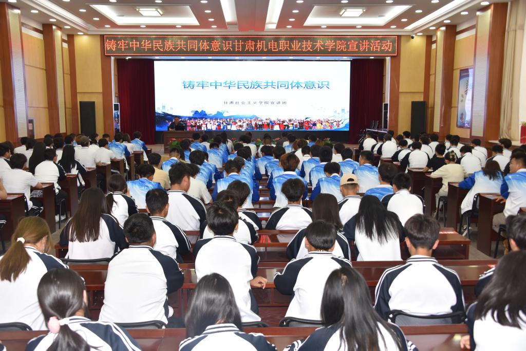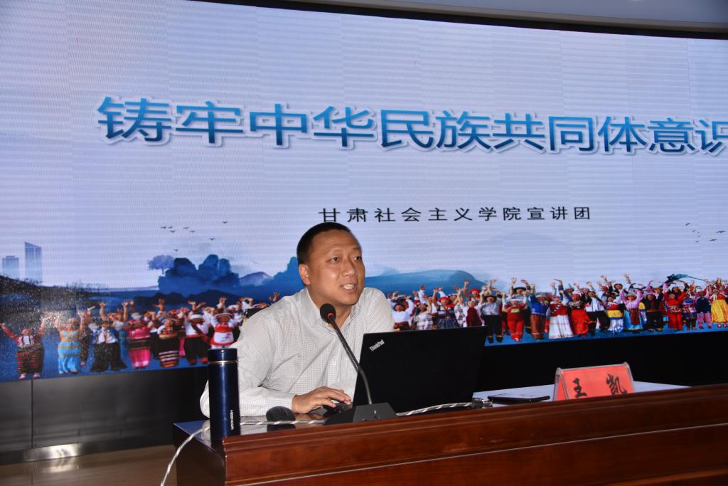 为进一步加强民族团结进步宣传教育,引导师生铸牢中华民族共同体意识,5月27日上午,学校举办“铸牢中华民族共同体意识”宣讲活动,邀请甘肃社会主义学院副教授王凯作专题辅导。宣讲活动由学校党委副书记文云主持。党委委员、统战部长谢旭斌,职能部门负责人及全校200余名师生代表现场聆听。
