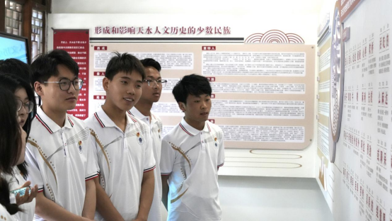 在天水市民族团结记忆馆,同学们参观了中华民族交往交流交融、民族团结进步创建、天水本土文化展示、中华文化体验四个分馆,详细了解了天水各族人民共同团结奋斗、共同繁荣发展的历史进程和五十六个民族基本情况。