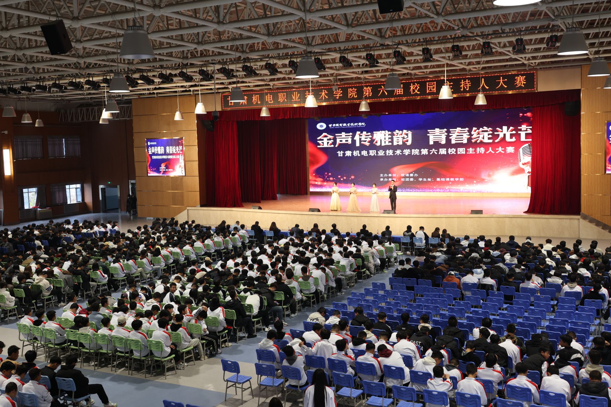 中华民族一家亲,同心共筑中国梦。为进一步繁荣校园文化,提升学生综合素质,引领广大学生唱响民族团结主旋律,铸牢中华民族共同体意识,11月12日下午,学校举办甘肃机电职业技术学院第六届校园主持人大赛。学校党委委员、宣传部部长张庆华,党委委员、统战部部长谢旭斌出席活动,团委、学生处、基础课教学部等相关部门领导和教师担任大赛评委。